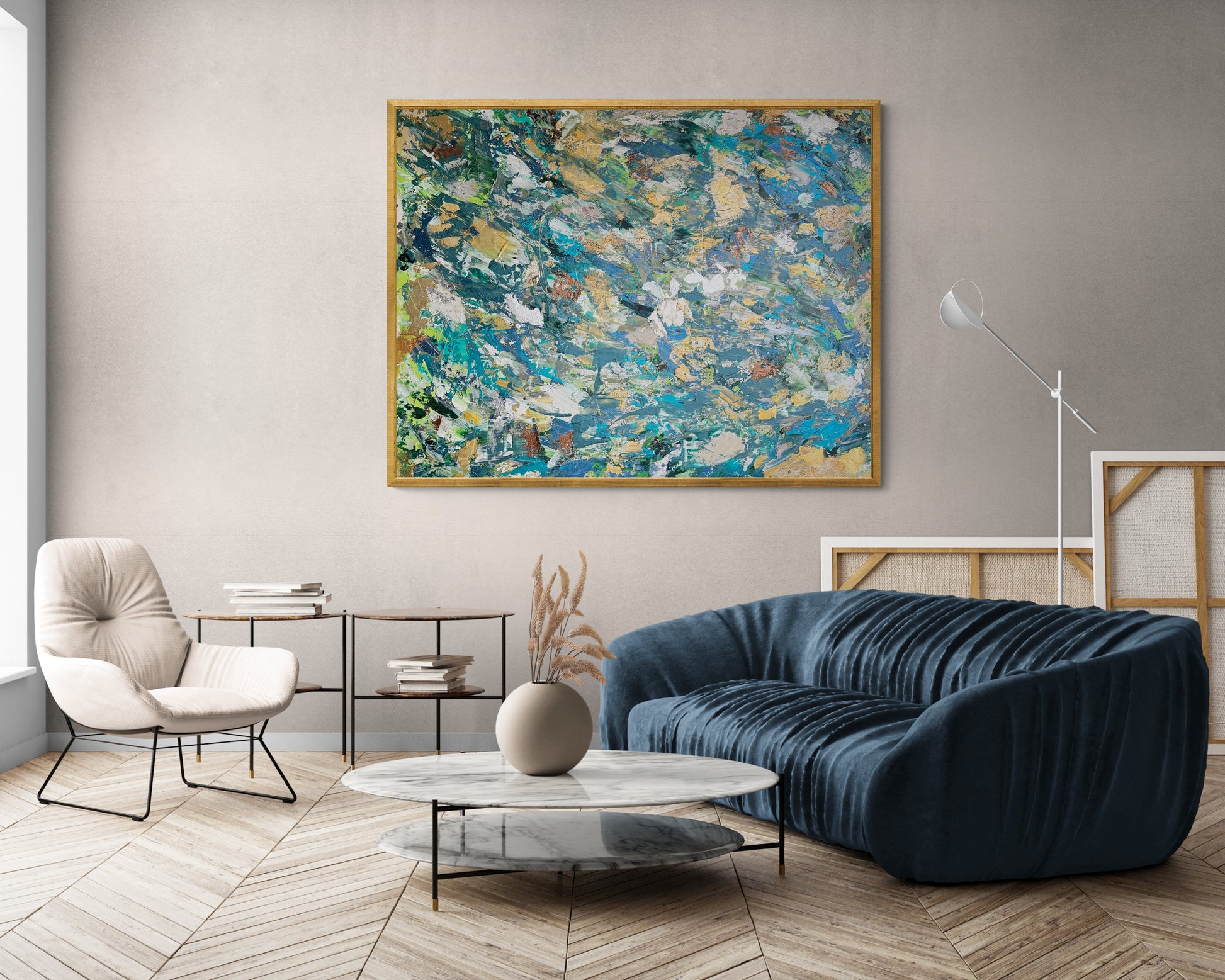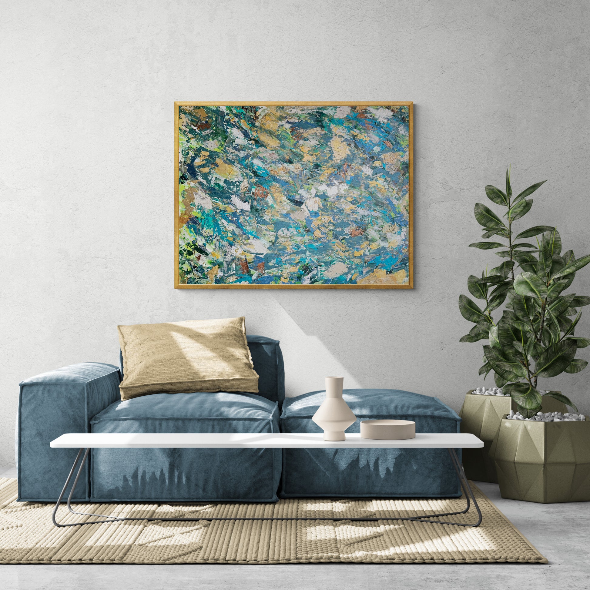 Chasing the Unknown is an abstract exploration of the pursuit of something beyond the familiar—a journey marked by uncertainty, curiosity, and bold exploration. The swirls of blues, greens, and earth tones evoke the feeling of a path that unfolds with every brushstroke, constantly shifting and revealing new depths. Each layer in this painting is a metaphor for the unknown—an adventure that continues to evolve with time and perspective.