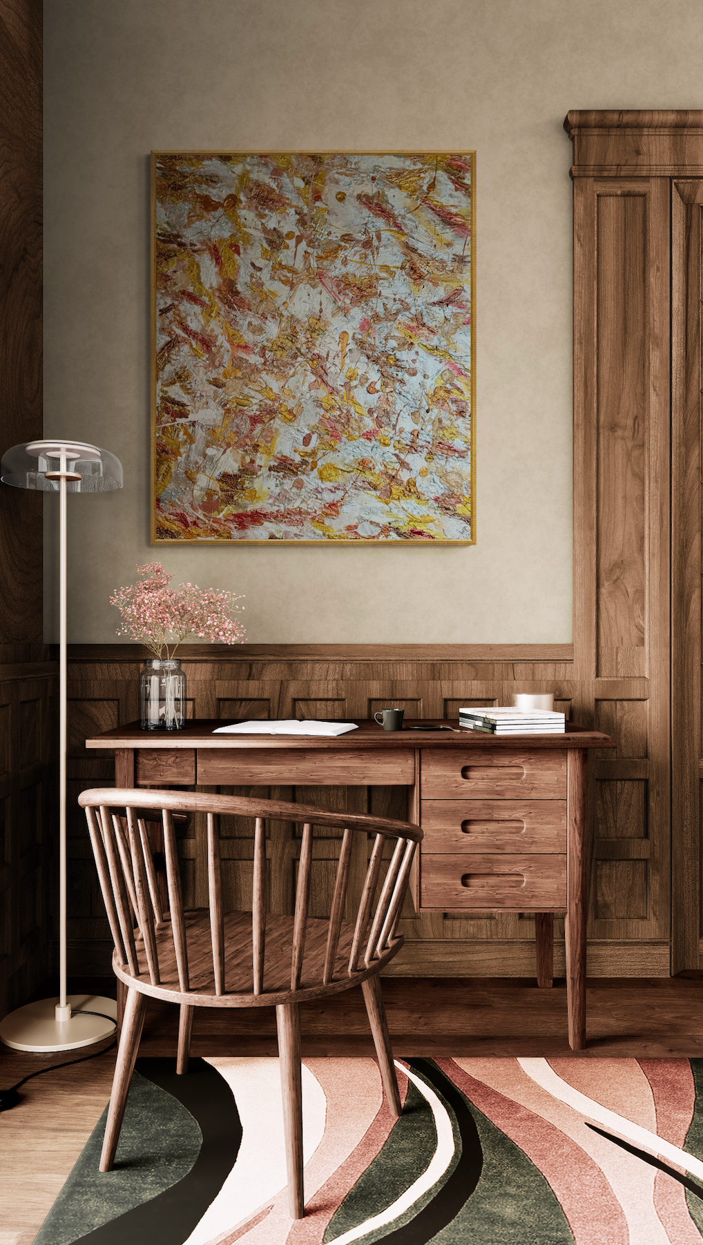 This original work blends movement with harmony, where bold, expressive strokes meet grounded, organic texture. It was reworked intuitively over time, becoming one of the artist’s most cherished pieces — symbolic of inner alignment and creative flow.