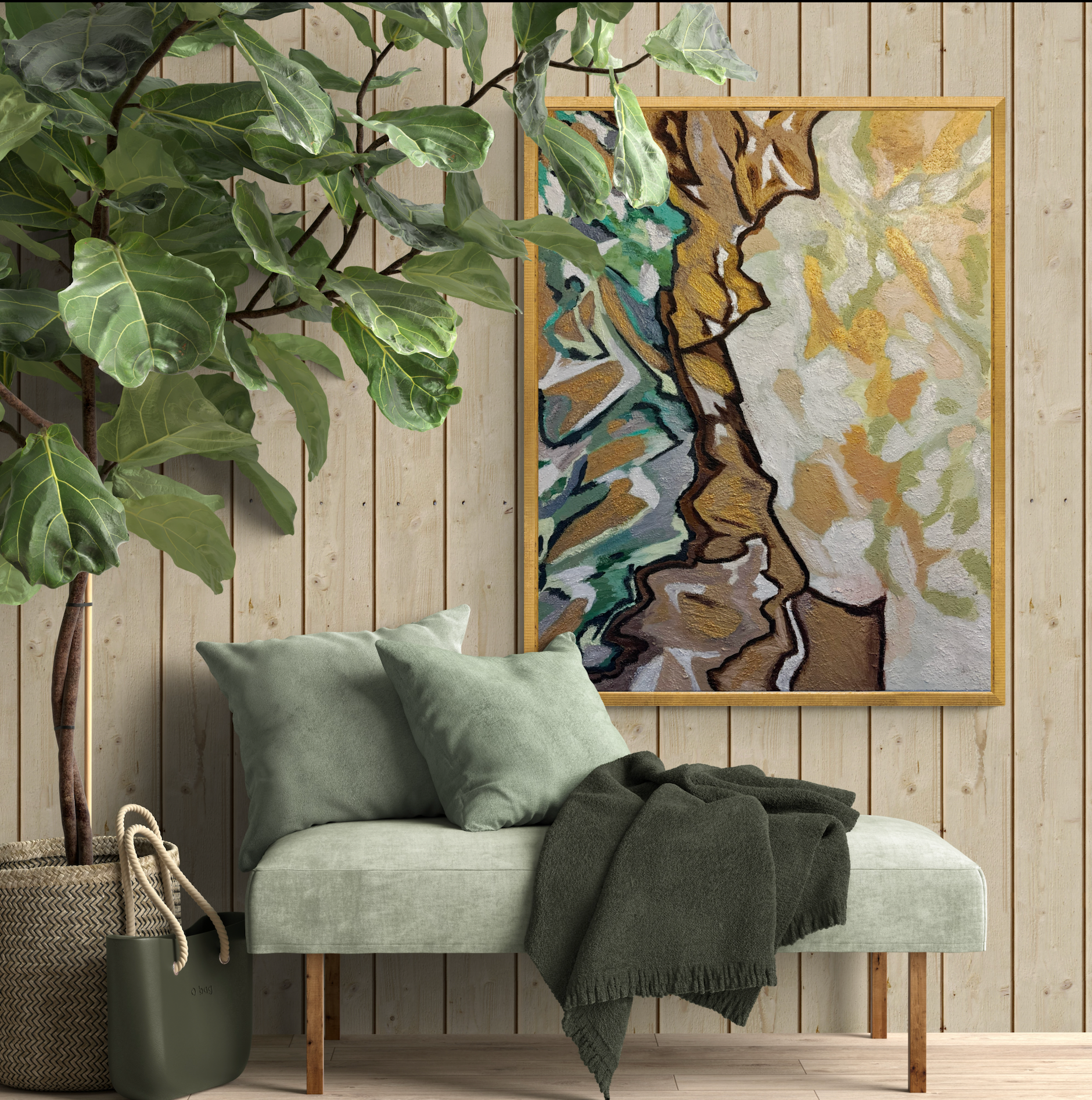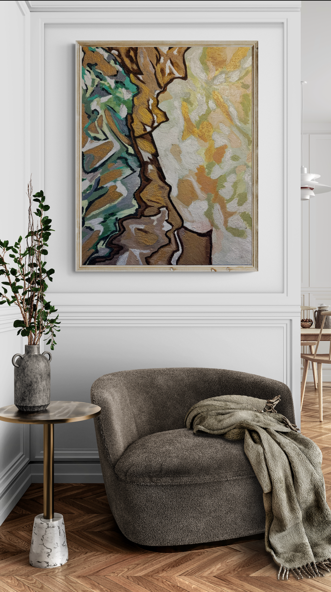 Inspired by the earthy tones of nature, Earthbound explores the harmonious blend of greens and browns, capturing the essence of organic textures and landscapes. The composition encourages a connection with the grounding beauty of the natural world, evoking a sense of calm and rootedness.