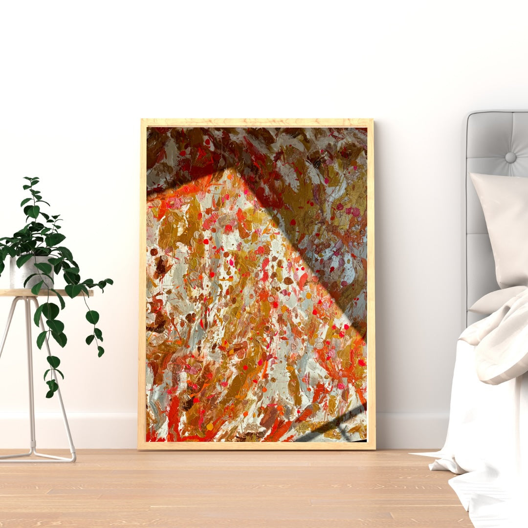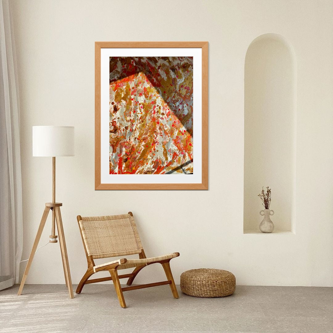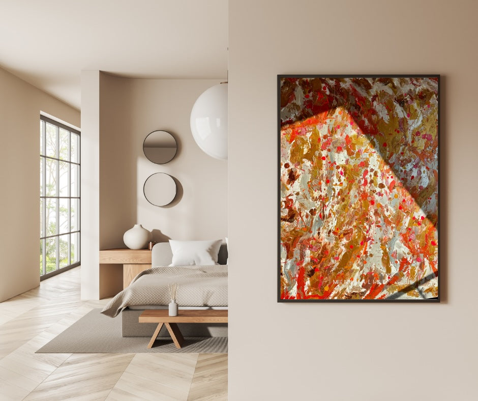 Oro embodies light, sensuality, and power. Layered with warm golds, sun-baked earth tones, and flashes of deep red, it draws on the richness of the Mediterranean — a painting that feels alive, radiant, and timeless.