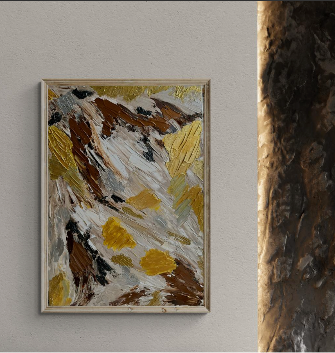 Terra draws inspiration from the raw beauty of the earth, with rich browns, golds, and deep textures evoking the strength and warmth of natural landscapes. The layered strokes and organic forms create a feeling of groundedness, capturing the essence of nature’s enduring presence.